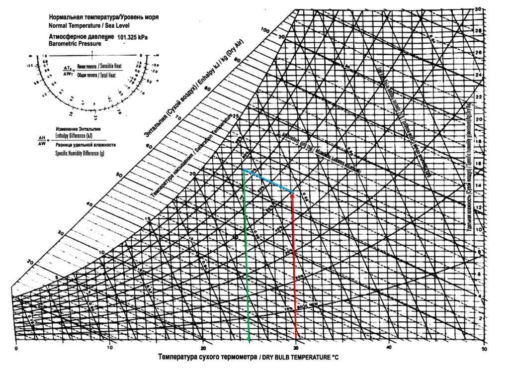 Su ve havanın karşılıklı etkileşimi sonucu hava nem kazanır ve soğur. Örneğin, havanın sıcaklığı 30 °C ve bağıl nemi %50 olduğunda, adyabatik yöntem kullanılarak havayı %85’e kadar doyurarak 25 °C’ye ulaşabilirsiniz.